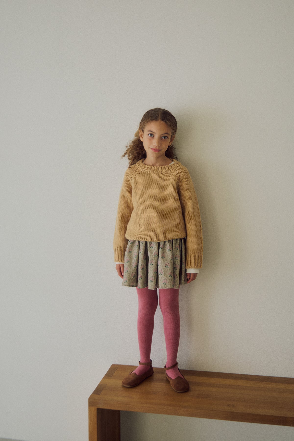 Soft natural tights that wrap gently around small legs, bringing a warm, quiet harmony to everyday outfits.