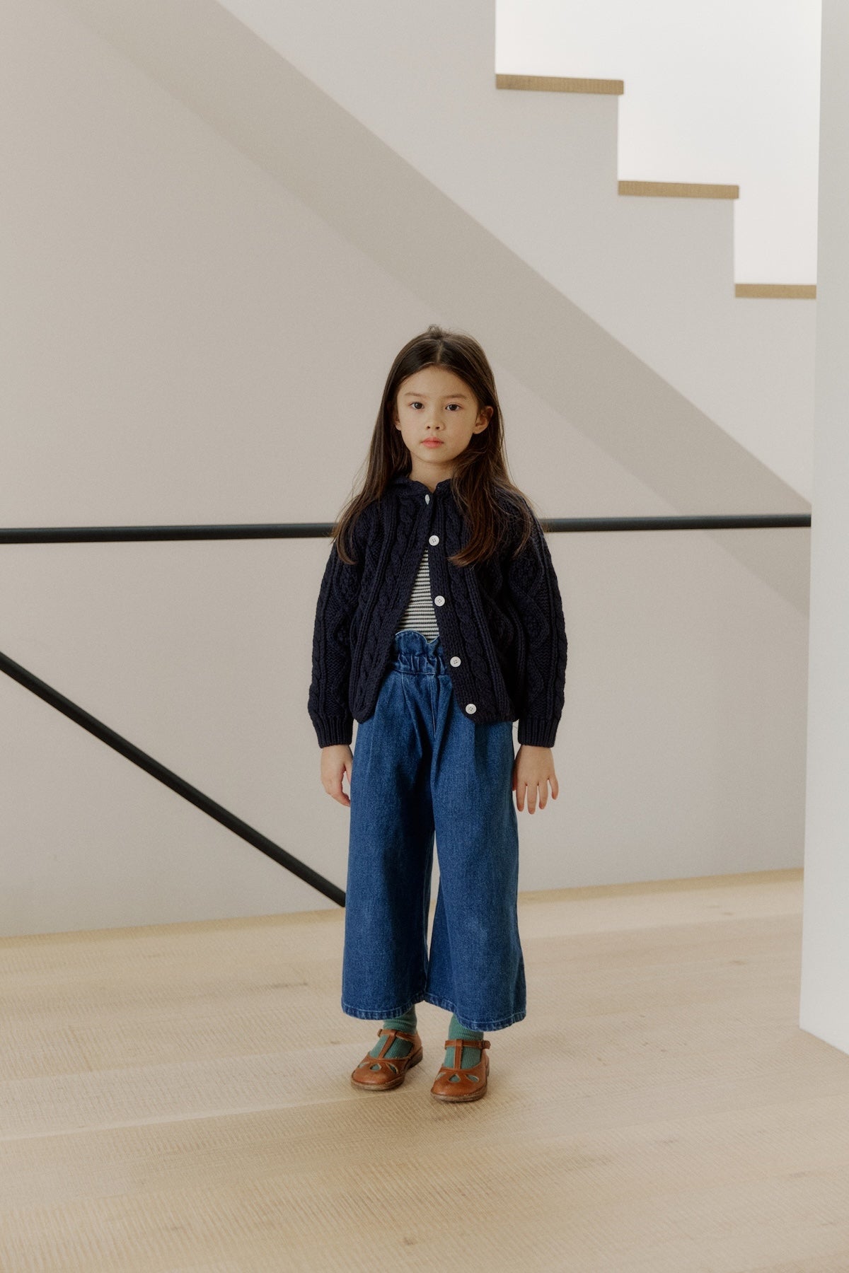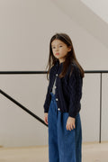 Wide-leg denim pants with a tulip waistband for effortless style.