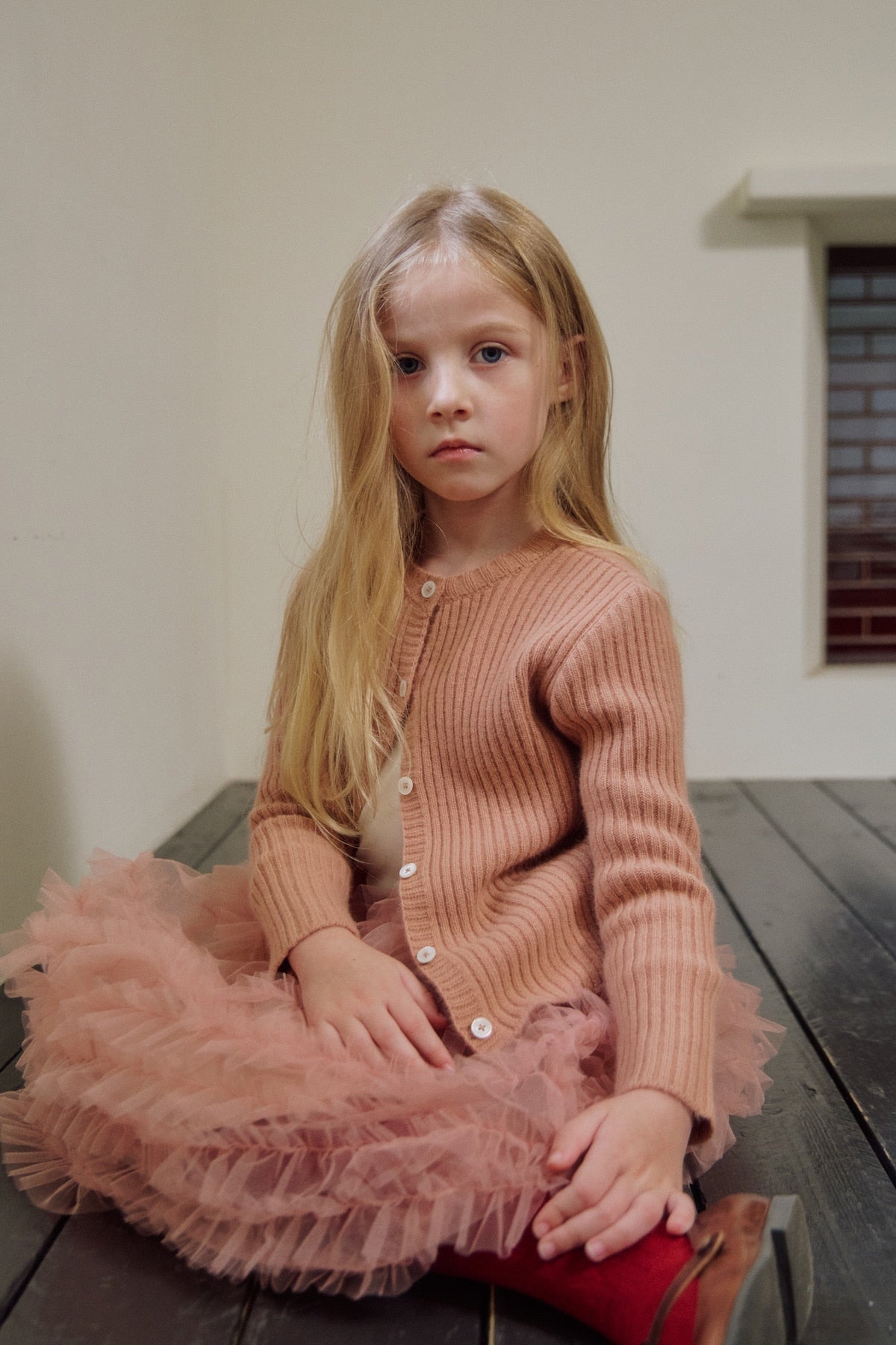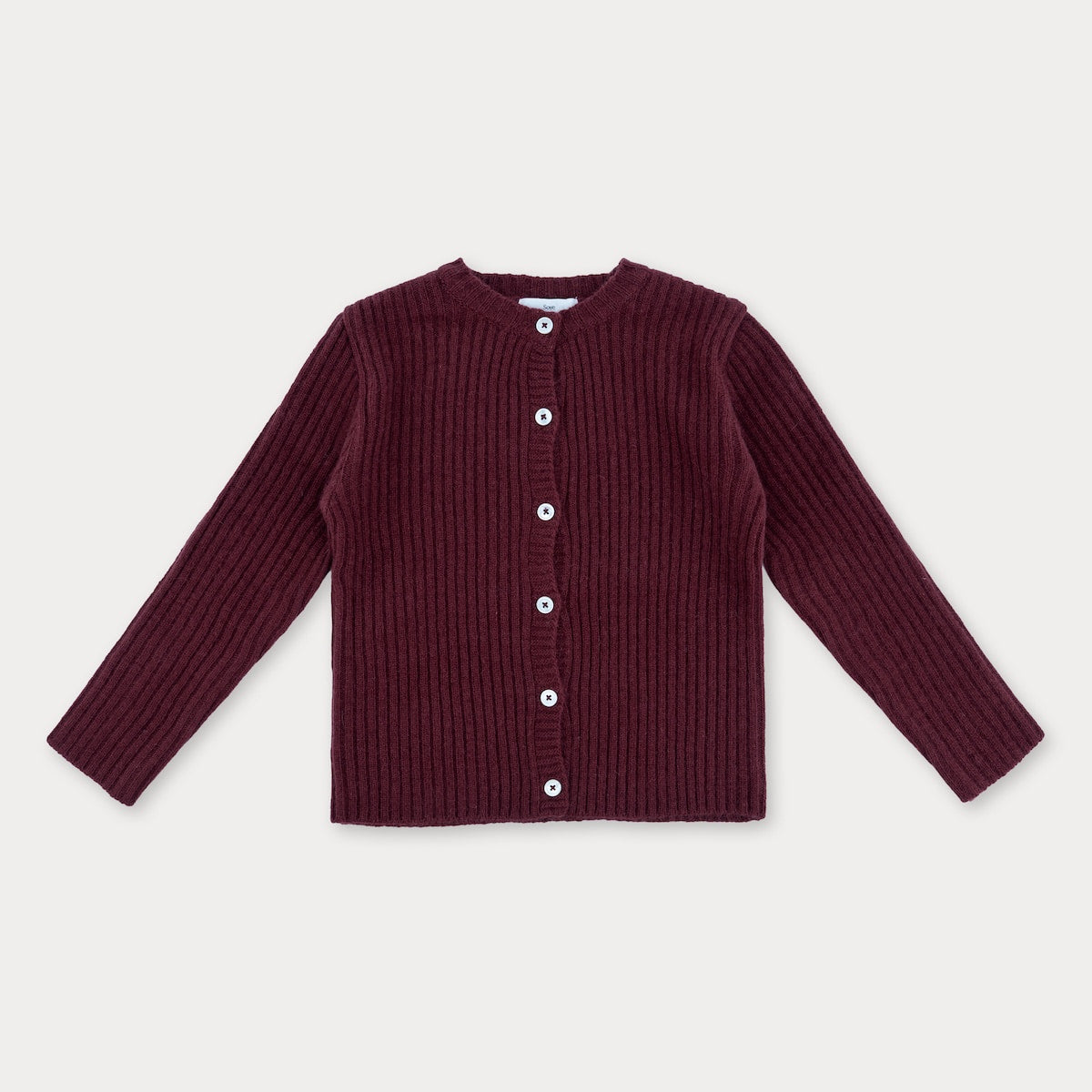 A ribbed cardigan in a luxurious wool and raccoon blend, ideal for versatile layering.