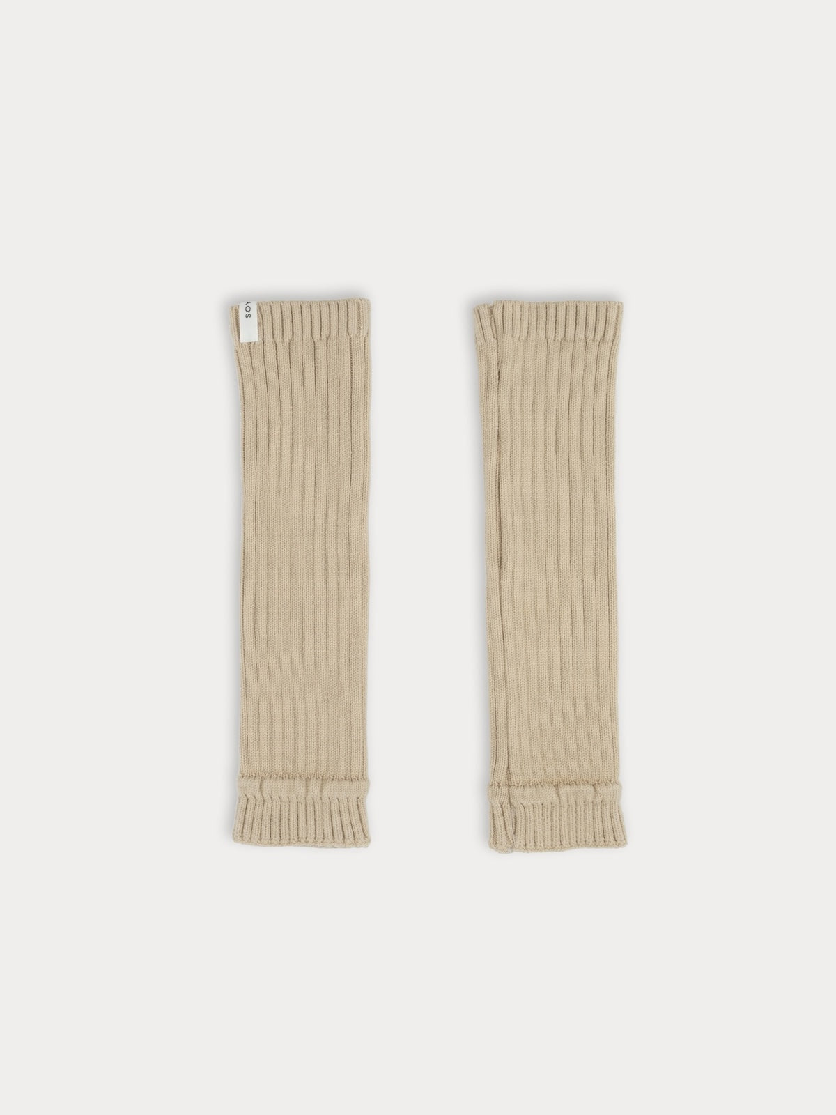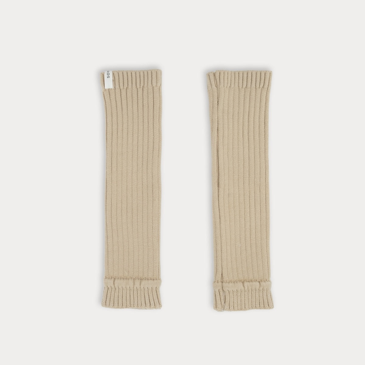 Soft ribbed leg warmers that gather gently at the ankles, adding a cozy, quietly charming touch to any winter look.